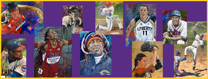 The Art Department proudly presents a celebration of Black History Month with an exhibition of sports legends illustrated by the late Robert Hurst. On display are original oil and acrylic paintings of Adrián Pérez, Cat Osterman, Reggie Jackson, Sammy Sosa, Willie Mays, Willie Wells, Lovie Smith, Michelle Carter, Sanya Richards, and Teresa Weatherspoon. The Spring exhibition “Sports Legends” is located in the gallery space connecting the lower level of buildings B and C in conjunction with Dr. Coleman’s display “They Were All Stars” from the Negro Leagues Baseball Museum.